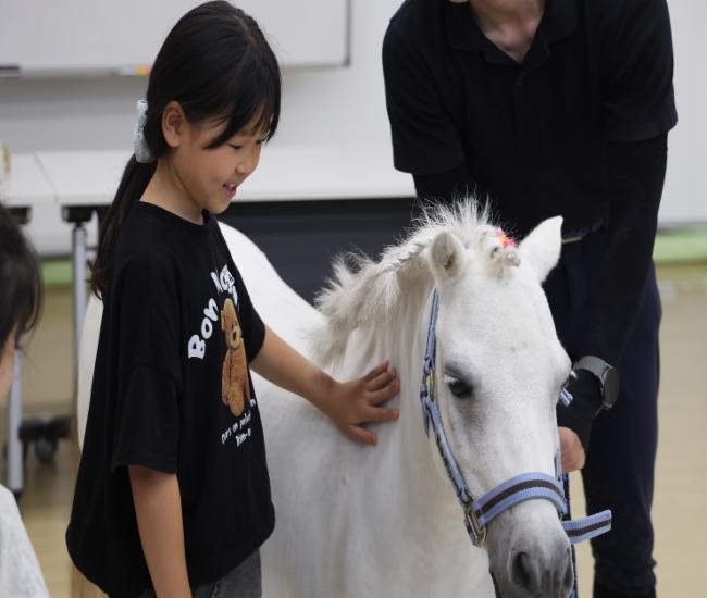 미니어처 포니 ‘바운티’와 ‘브라우니’의 등장에 아이들은 매우 즐거워하면서도 차분한 분위기에서 환대해 주었다. 사전에 전문 강사와의 수업을 통해 겁이 많고 청각이 다소 예민한 말의 특징을 미리 배웠기 때문이다.