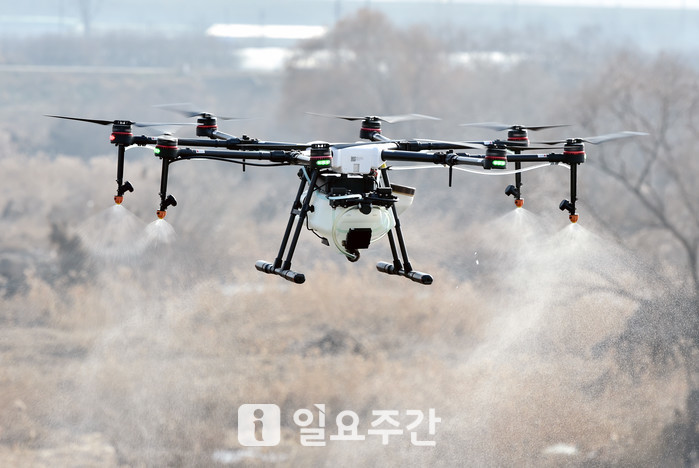 | ▲대구 동구 대림동 철새 도래지인 금호강 안심습지 일원에서 조류인플루엔자(AI) 방역을 하고 있는 드론 모습. |