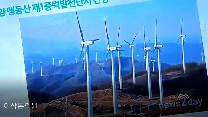 ▲ 지난 10일 국회 환경노동위원회 국정감사에서도 공개된 타 지역 풍력발전 조성단지 현장 모습. |