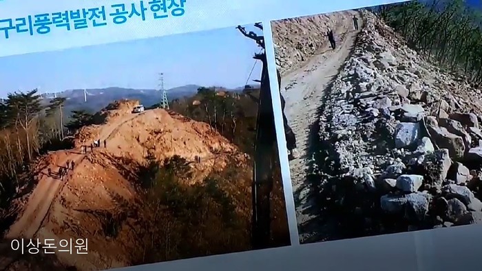 ▲ 지난 10일 국회 환경노동위원회 국정감사에서도 공개된 풍력발전 공사 현장 모습. |