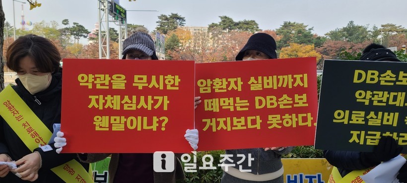대학 병원 등에서 암 수술 이후 2차 치료를 위해 요양병원에서 진료를 받고 있는 환우들이 ‘DB 암 실손 부지급 피해자 모임(디피모)’이란 단체를 결성해 DB손해보험의 실비보험금 지급 거절에 맞서 9일과 10일 이틀 간에 걸쳐 금융감독원과 DB손해보험 본사 앞에서 실비보험금 지급을 촉구하는 집회를 열고 이 같이 목소리를 높였다.