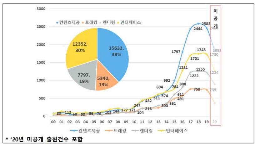 4일 특허청에 따르면 실감형 콘텐츠 기술 관련 특허출원동향(2000~2020년)은 지식재산 세계5대 특허청(IP5)을 중심으로 전체 출원 건수가 총 3만1567건에 달했다. 특히 2010년 이후 연평균 19%로 가파르게 성장했다.