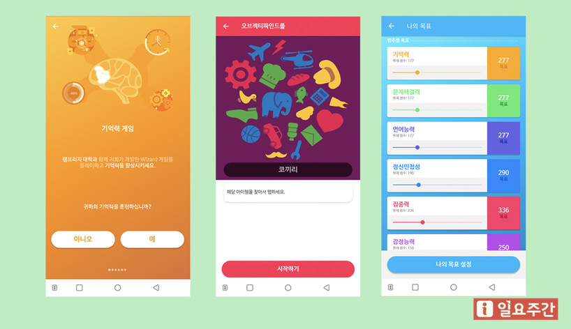 ▲매일 규칙적인 뇌 훈련을 도와주는 앱 '피크' (이미지 편집=일요주간) |