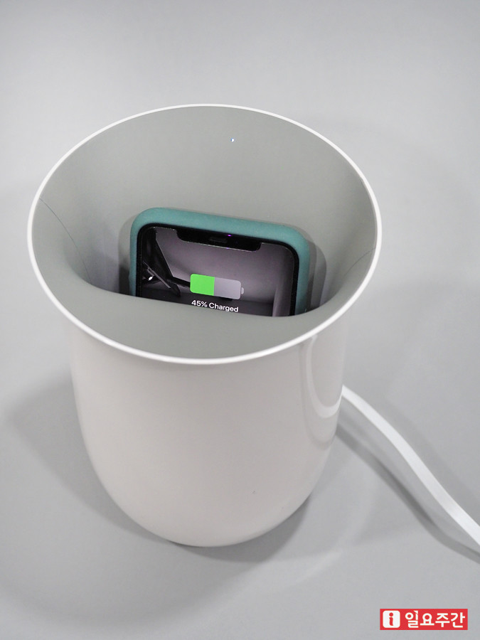 렉슨 오블리오는 10W의 전력으로 무선 충전이 가능하며 완전 충전까지 약 3시간 정도 소요된다. 스마트폰을 오블리오에 넣으면 작은 불빛이 반짝이며 충전이 시작된다. 과한 조명이 나오지 않아 수면하는 동안 방해를 주지 않는 점도 돋보였다.