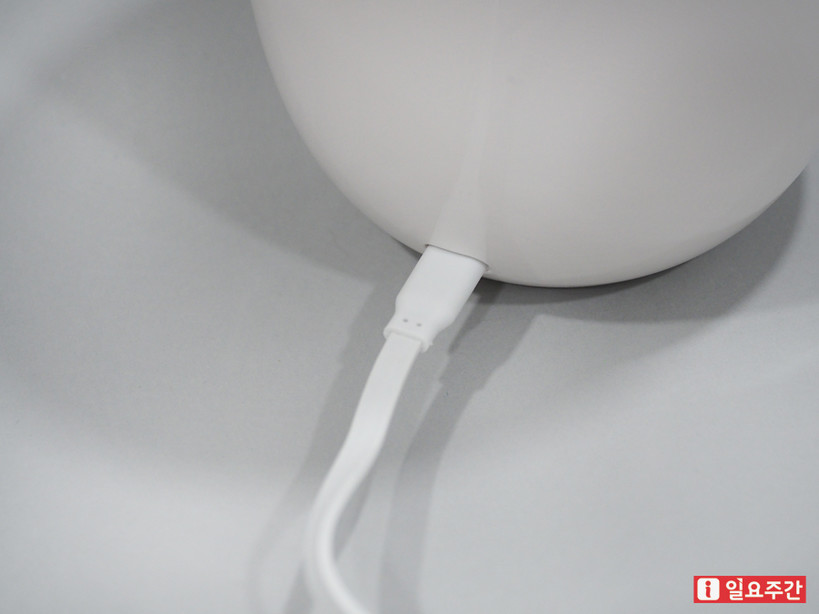 오빌리오의 밑면을 보면 가운데 버튼을 사용해 살균을 위한 UV-C LED를 끄고 켤 수 있는 기능도 있으며, USB-C 타입의 케이블로 전원 연결이 가능하다.