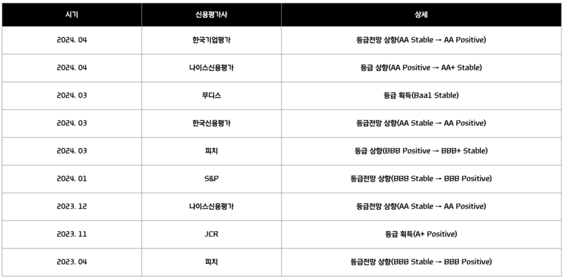 이달 초 나이스신용평가도 AA Positive(긍정적)에서 AA+ Stable(안정적)로 높였다.