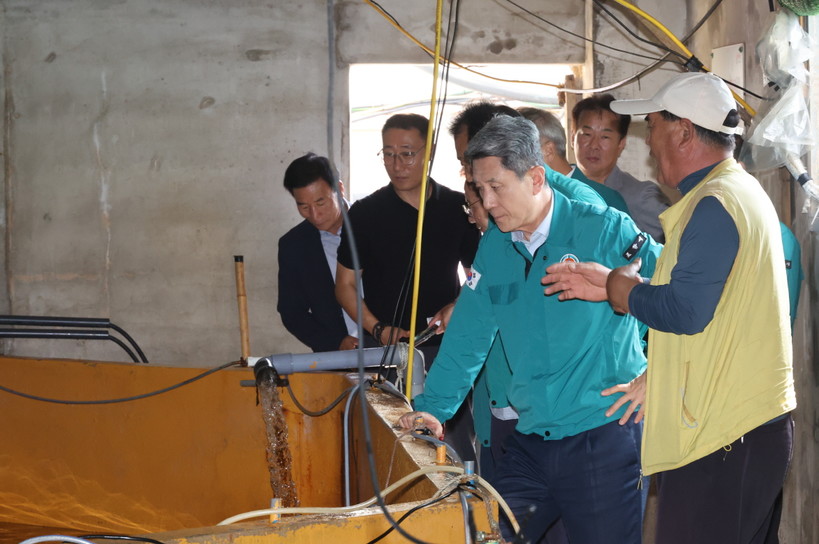 이강덕 포항시장은 22일 고수온으로 양식어류 피해가 발생한 남구 구룡포읍에 위치한 양식장을 방문해 피해 어업인들을 격려하고 고수온 대응 상황을 점검했다.