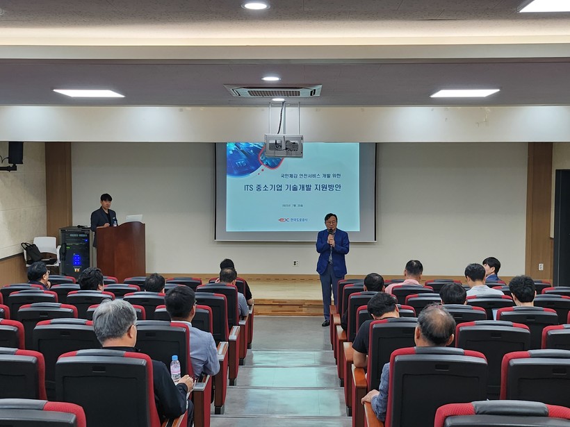 | ▲ 박태완 ITS 처장이 ITS 중소기업 기술개발 지원방안에 대한 설명을 하고 있다. (사진=한국도로공사) |