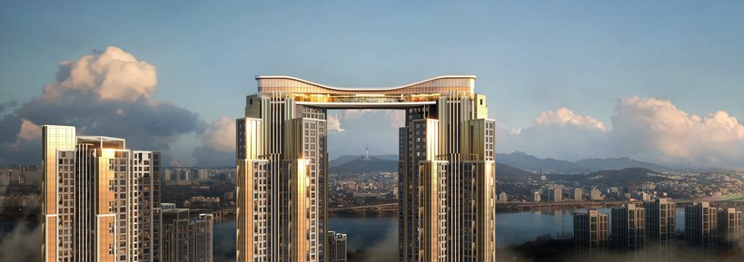 특히 반포의 상징적 아이콘이 될 170m 높이, 100m 길이의 스카이 브릿지와 한강의 화려한 곡선을 모티브로 한 단지 입구 230m 길이의 초대형 문주는 주변을 압도해 단지 고급화를 더욱 돋보이게 할 예정이다.
