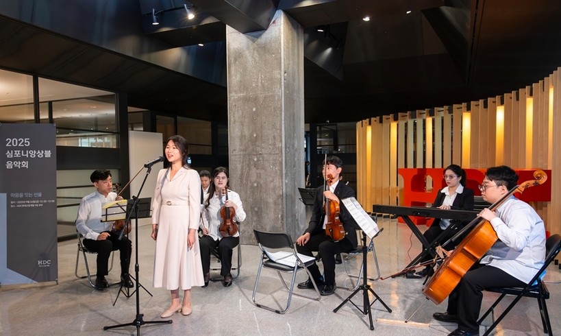 [일요주간=엄지영 기자] HDC현대산업개발이 본사 9층 로비에서 장애인 예술단 ‘心포니 앙상블’ 음악회를 개최하며, 장애인 문화예술 활성화와 사회적 인식 개선을 위한 뜻깊은 자리를 마련했다. 점심시간을 활용한 이번 공연에는 본사 임직원과 방문객이 함께 참여해 장애 예술인들의 무대를 직접 경험했다.