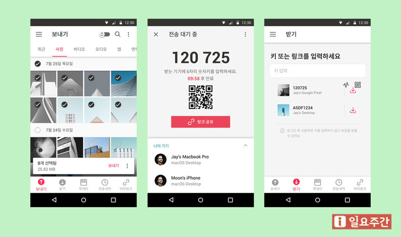 | ▲어디서든 파일을 주고받을 수 있는 앱 '센드 애니웨어' (이미지 편집=일요주간) |