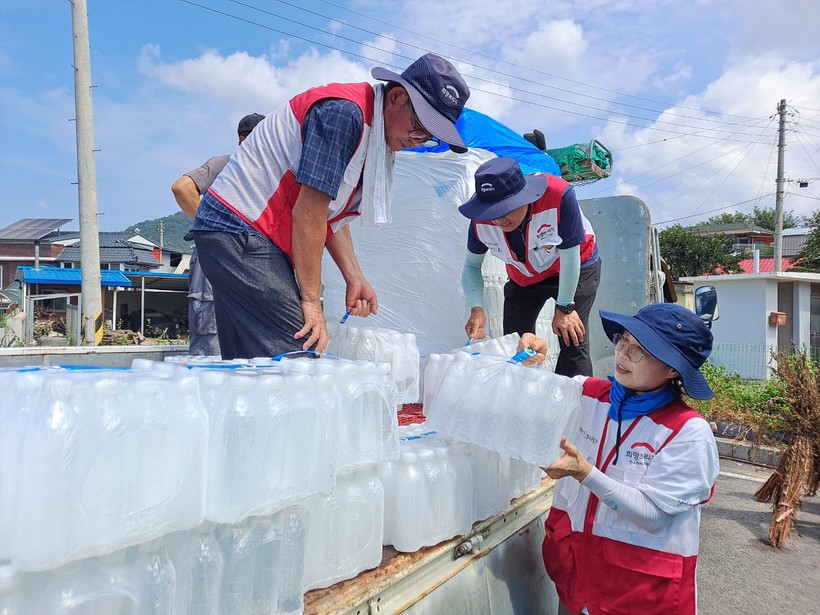 ▲ 희망브리지 전국재해구호협회는 기후재난으로 어려움을 겪는 지역 주민과 자원봉사자들에게 생수 30만여 병을 긴급 지원한다. (사진=희망브리지 제공)