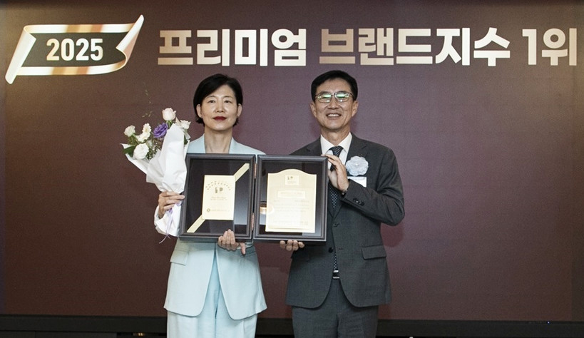 ▲ 11일 롯데호텔 서울 사파이어 볼룸에서 열린 ‘2025 프리미엄 브랜드지수(KS-PBI)’ 시상식에서 14년 연속 호텔부문 1위에 오른 정미은 롯데호텔앤리조트 운영부문장(왼쪽)과 문동민 한국표준협회 회장(오른쪽)이 기념촬영을 하고 있다. (사진=롯데호텔앤리조트 제공) |