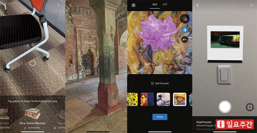 ▲가상현실과 AI 기술, 스트리트 뷰 등 구글의 기술이 집약된 '아트앤컬처' 앱 (이미지 편집=일요주간) |