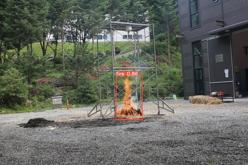 | ▲ 모니터링 시스템에서 인식한 모의 화재(감시 대상을 빨간색 네모로 표시) (사진=한전) |