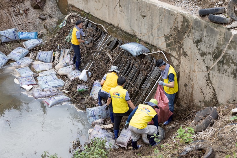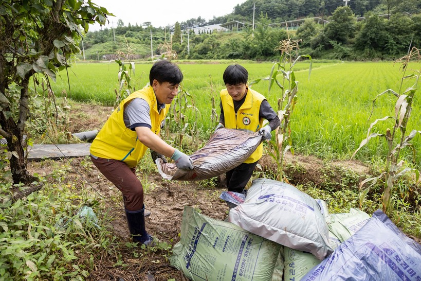 서부발전은 집중호우로 무너진 산비탈을 복구하고 유실된 가축 사료 포대를 수거해 다시 정리했다. 또 하천 범람 영향으로 광범위하게 흐트러진 생활 쓰레기를 수거하는 등 구슬땀을 흘렸다.
