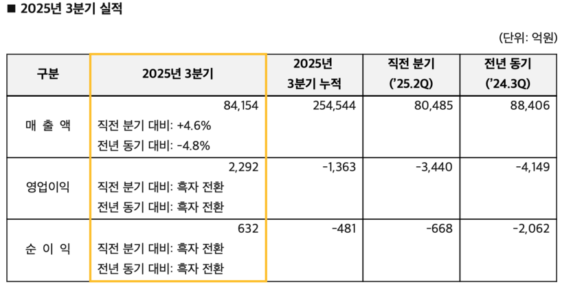 [일요주간 = 이수근 기자] 에쓰-오일(S-oil, 대표 후세인 알 카타니)은 2025년 3분기 매출액 8조 4154억 원, 영업이익 2292억 원, 순이익 632억 원을 기록했다고 3일 밝혔다. 정제마진 및 윤활기유 스프레드 호조에 힘입어 전분기 대비 영업이익이 크게 개선됐다.