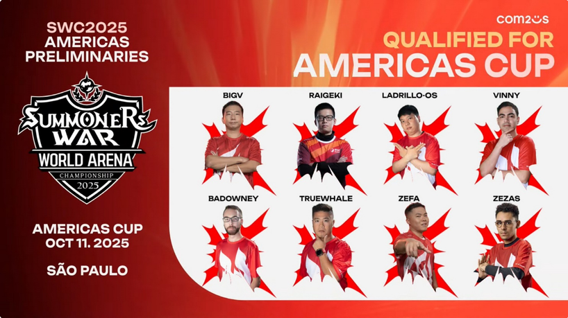 [일요주간 = 하수은 기자] 글로벌 e스포츠 대회 ‘서머너즈 워 월드 아레나 챔피언십 2025’(SWC2025)가 아메리카 컵 본선 진출자 8인을 최종 확정했다.