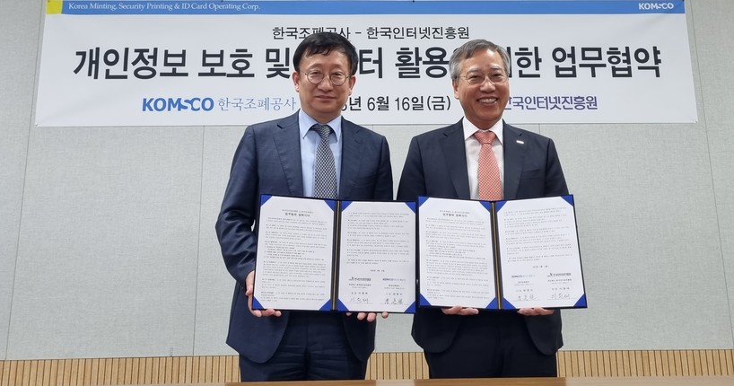 [일요주간 = 김영란 기자] 한국조폐공사(사장 반장식, www.komsco.com)가 한국인터넷진흥원과 개인정보 보호 및 데이터 활용 생태계 조성을 위한 협력에 나섰다.