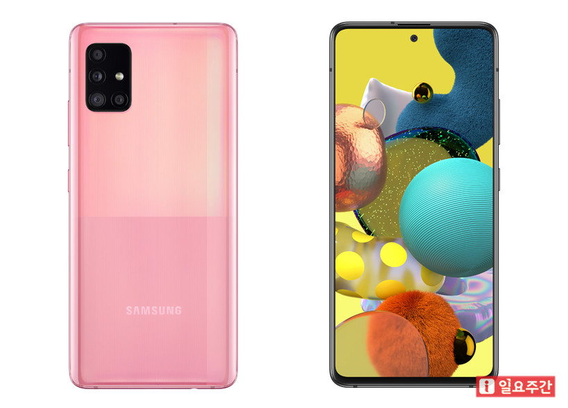 | ▲프리즘 큐브 핑크 색상의 갤럭시 A51 5G (이미지 편집=일요주간) |