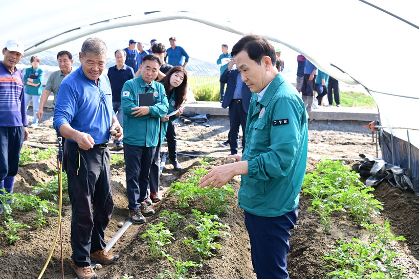 [일요주간=최부건 기자] 고령군(군수 이남철)은 10월 1일(화) 고온 피해로 농작물 재배에 어려움을 겪고 있는 개진면 딸기 농가, 감자 농가에 군수, 군의회, 도의원, 농협 등 관련 행정기관이 함께 방문하여 피해 현황 파악 및 농가의 애로사항을 청취하였다.