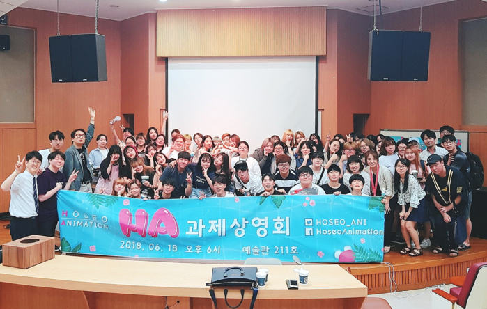 | ▲ 애니메이션전공 과제전 단체사진.(사진=호서대학교 제공) |