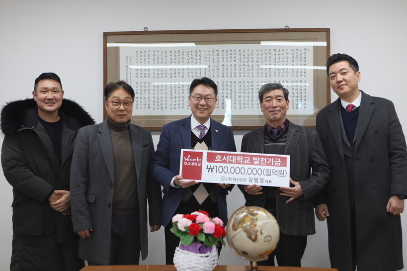 [일요주간 = 김성환 기자] 호서대학교는 26일 ㈜태산전자 김필영 대표가 대학발전을 위해 사용해 달라며 발전기금 1억 원을 쾌척했다고 밝혔다.