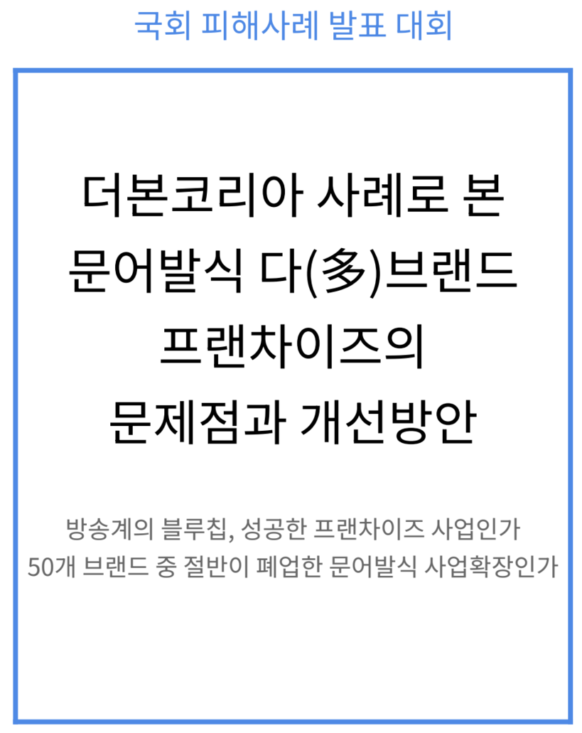이날 토론회는 단순히 한 기업의 문제가 아니라 프랜차이즈 산업 전반의 구조적 불공정을 짚어내는 자리였다. 이제 공은 국회와 정부, 그리고 기업 스스로에게 넘어갔다.