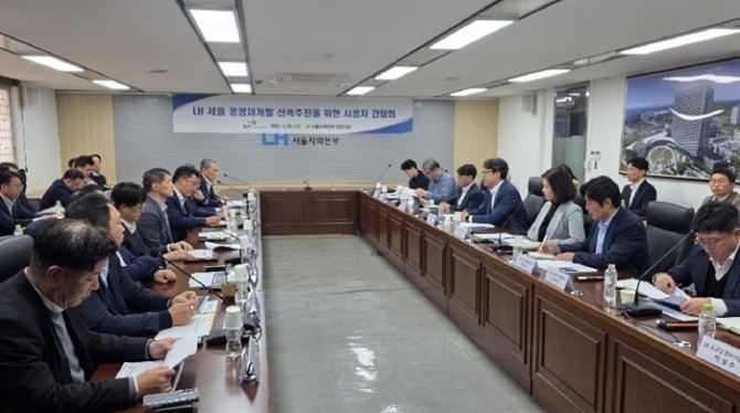 LH는 5일 서울지역본부에서 거여새마을, 중화5구역 등 6개 공공재개발 구역의 시공사 8곳과 간담회를 열고, 사업 신속 추진 및 제도 개선 방안을 논의했다고 밝혔다. 이번 간담회에는 두산건설, 삼성물산, GS건설, 현대엔지니어링, DL E&C, 현대건설, 한화건설, 호반건설이 참여했다.