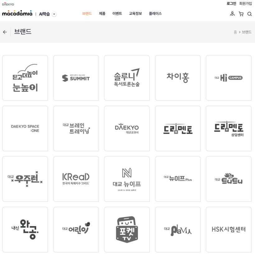 | ▲ 대교 교육 서비스 플랫폼 마카다미아 홈페이지 갈무리. |