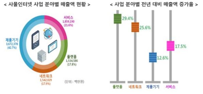 과기정통부 관계자는 "국내 사물인터넷 기술이 다른 정보통신기술에 비해 상대적으로 높은 기술력을 확보하고 있는 만큼 매출액 증가와 함께 수출 경쟁력이 향상되고 있다"며 "국내 사물인터넷 시장이 제품기기의 비중이 높은 초기 단계를 벗어나 플랫폼과 서비스로 확대되는 것으로 보인다"고 평가했다.