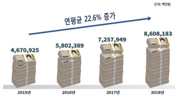 전체 매출액에서 내수가 7조8880억원(91.6%)으로 가장 큰 비중을 차지했으나, 수출액이 빠르게 증가(연평균 성장률 40%)하는 것으로 나타났다.