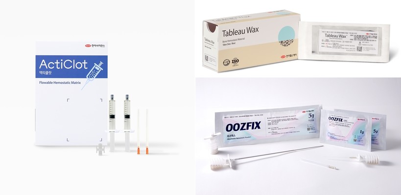 해당 제품은 ▲흡수성 분말형 보조지혈제 우즈픽스(Oozfix) ▲폴록사머 기반 흡수성 뼈 지혈제 타블로왁스(Tableau Wax) ▲전분 유래 고분자 매트릭스에 트롬빈을 결합한 액티브 지혈제 액티클랏(ActiClot)으로 한미사이언스 의료기기 분야의 핵심 제품으로 구성됐다.