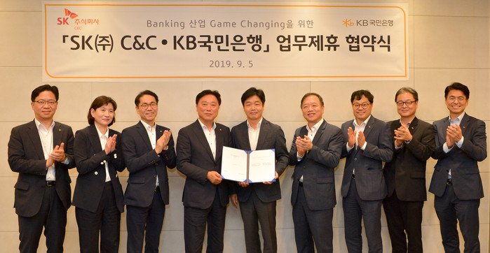 [일요주간=채혜린 기자] KB국민은행(은행장 허인)이 임직원의 신기술 강화 교육과 혁신사업 모델 공동개발 등을 목표로 SK㈜ C&C(사업대표 안정옥)와 전략적 협력을 위한 업무협약을 체결했다.