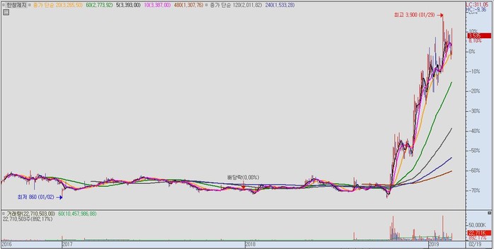 한창제지: 최근 상승랠리에서 주가 상승폭이 가장 컸던 종목이다. 본업은 제지업이고 백판지등을 생산하는 회사이다. 제지업의 호황으로 영업이익은 흑자를 기록 중이며 한창제지 최대주주 김승한 회장이 황교안 전 총리와 성균관대 동문이고, 사외이사인 목근수 변호사가 황 전 총리와 사법연수원 동기라는 이야기로 테마주에 편입되었다.