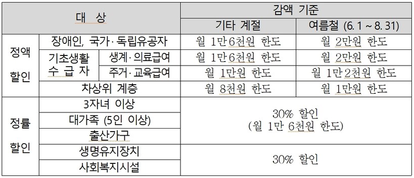 | ▲ 전기요금 복지할인 제도(표=한전) |