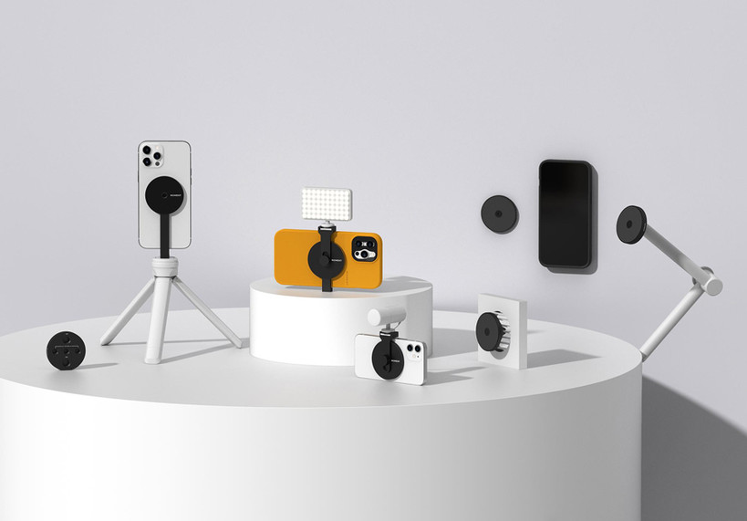 먼저 폰 자체에 심어진 맥세이프를 활용해 손쉽게 부착되는 형태의 월 마운트와 차량용 벤트 마운트처럼 단순한 용도의 제품도 있지만, 트라이포드에 장착할 수 있는 형태와 콜드슈가 장착되어 조명이나 마이크를 연결해서 사용할 수 있는 형태도 있다.