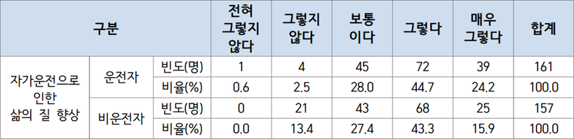 ▲ 장애인 자가운전에 대한 인식 조사 결과(표=도로교통공단) |
