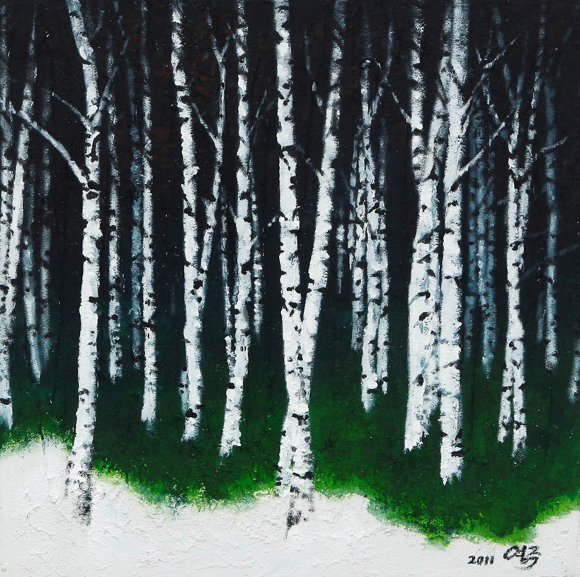 “나의 삶속에서 나는 자연과 더불어 살았다. 골판지를 재료로 꿈을 꾸듯 아름다운 자연을 그리고 싶었다. 숭숭 뚫린 골판지를 잘라 하나하나 붙여나가니, 그 위에 그려야 할 자연들이 너무 많아졌다. 잊혀져가는 기찻길을 소재로 시작하였고 자작나무 시리즈와 아름다운 자연을 배경으로 작품을 구상해 나갔다.”