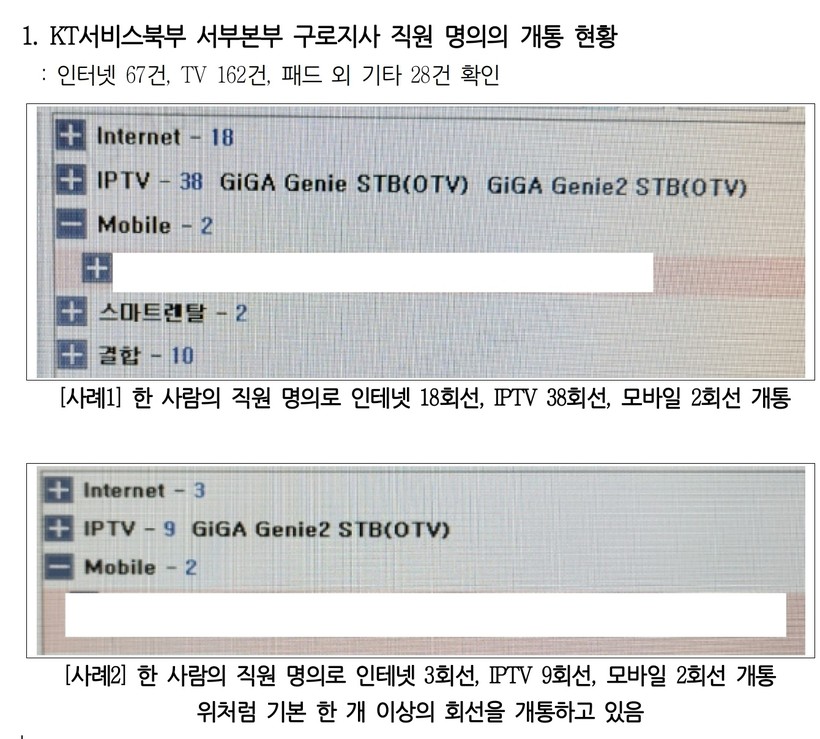 ▲ KT새노조가 공개한 직원 명의로 개통된 인터넷 회선 관련 내부고발 내용.(자료=KT 새노조 제공) |
