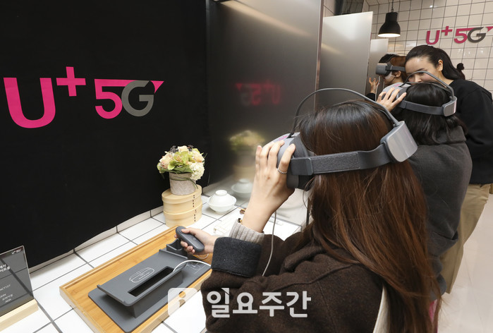 | ▲ VR과 AR을 이용한 U+5G 서비스 체험 장면. |