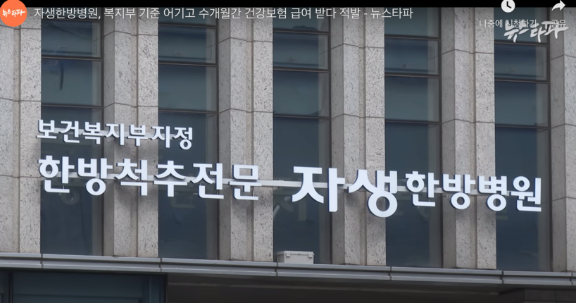 자생한방병원 "정부 지침에 맞게 급여 청구 진행 중"...취재 시작되자 일부 영상 삭제 등 나서