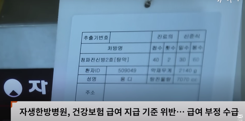 이 매체는 "그런데 심평원이 공개한 건강보험 급여를 지급받는 기준 처방 어디에도 청파전은 없었다"며 "더구나 지침에는 기존 처방 목록에 해당하지 않으며 원칙적으로 한약 처방을 할 수 없다고까지 명시해 놨다"고 밝혔다.