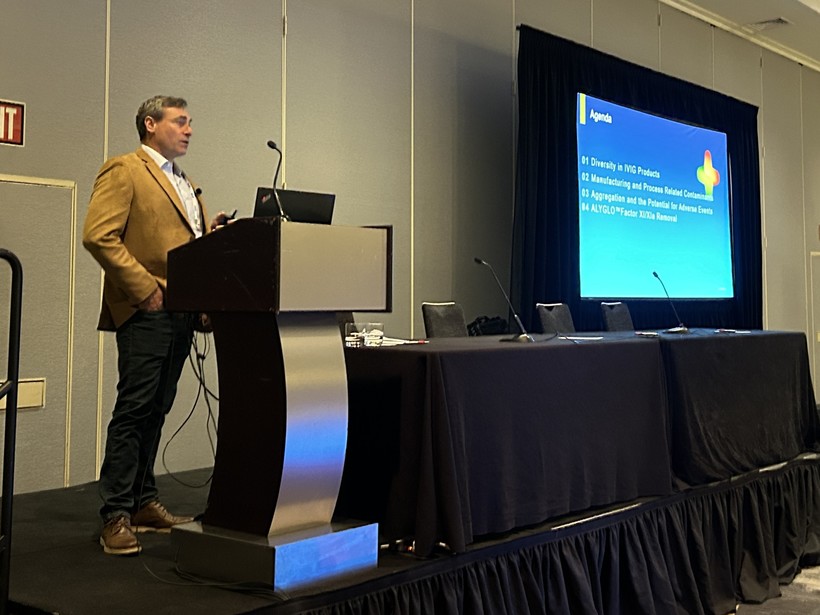 이달 초 필라델피아에서 열린 임상면역학회(CIS)에서는 현지 면역학 전문가 약 1000명을 대상으로 알리글로의 정제 기술인 CEX(Cation Exchange Chromatography)의 장점이 소개됐다. 발표는 글로벌 CRO 기업 플로리틱스(Prolytix)의 최고운영책임자 라이언 도프만 박사가 맡았다.