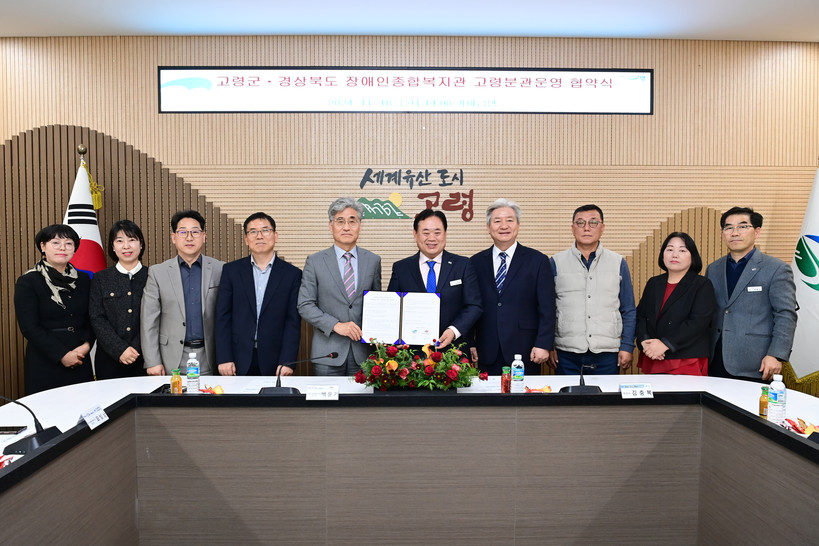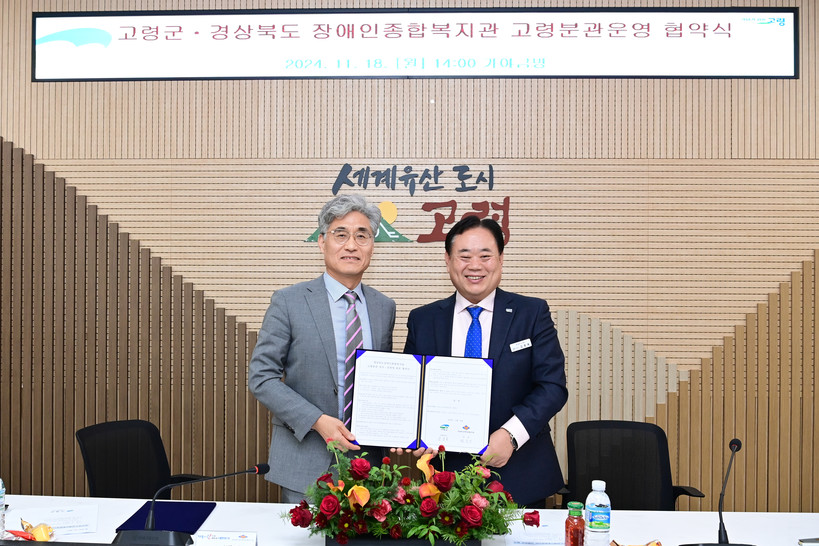 [일요주간=최부건 기자] 고령군과 경상북도장애인종합복지관(관장 백운기)은 11월 18일(월) 14:00 군청 가야금방에서 장애인복지관 고령분관의 위탁 운영을 위한 협약을 체결하였다.