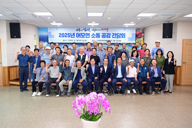[일요주간=최부건 기자] 김천시 어모면(면장 윤숙이)에서는 6월 18일, 어모면 행정복지센터 2층 회의실에서 배낙호 김천시장과 기관·단체장, 이장 등 50여 명이 참석한 가운데 ‘2025 어모면 소통·공감 간담회’를 개최했다.