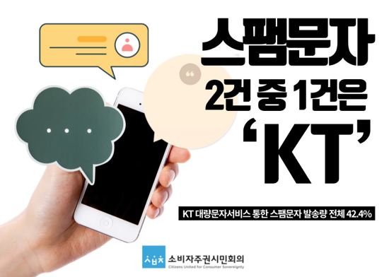 | ▲KT가 스팸문자를 가장 많이 발송하고 있는 것으로 나타났다.(사진=소비자주권시민회의) |