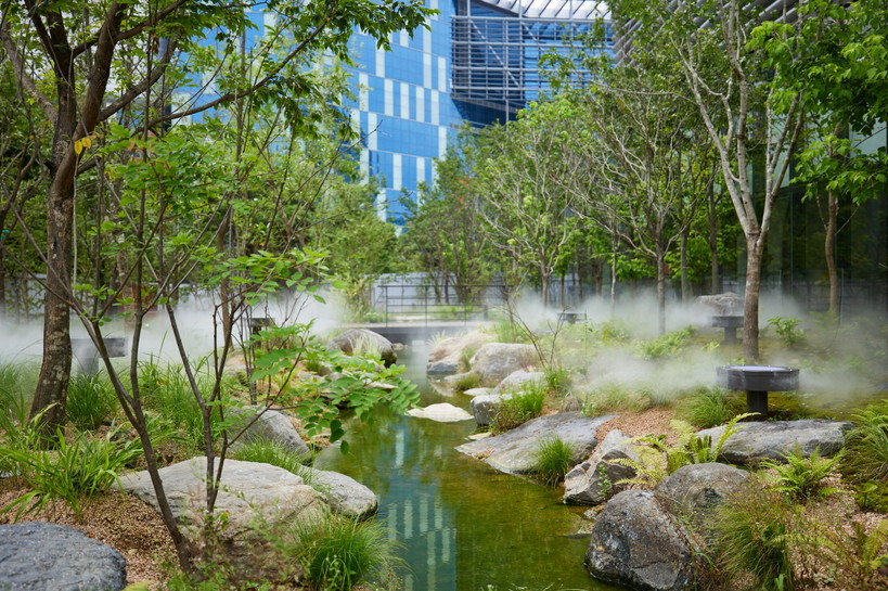 ▲ 네이처갤러리에 안개가 더해져 운치있는 숲과 연못의 모습.(사진=삼성물산 제공) |