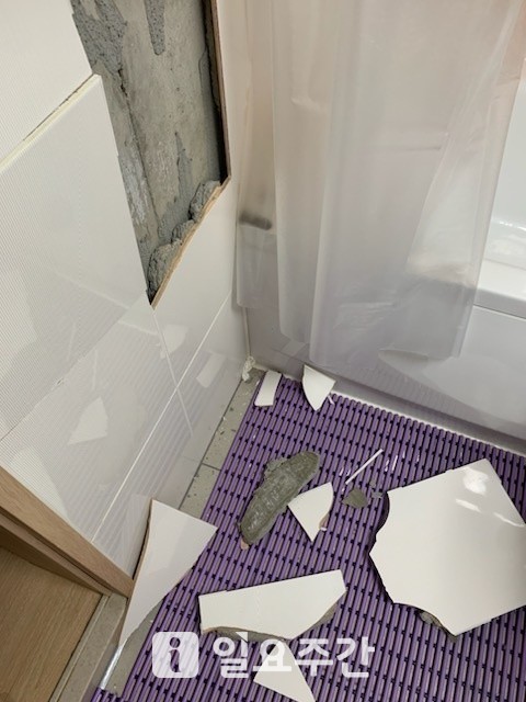A 씨는 2019년 5월 입주를 했다며 “건물이 지어진 지 3년 8개월이면 신축 아파트나 다름이 없는데 욕실 벽타일이 떨어졌다는 건 부실시공으로 밖에 볼 수 없다”고 분통을 터트렸다.