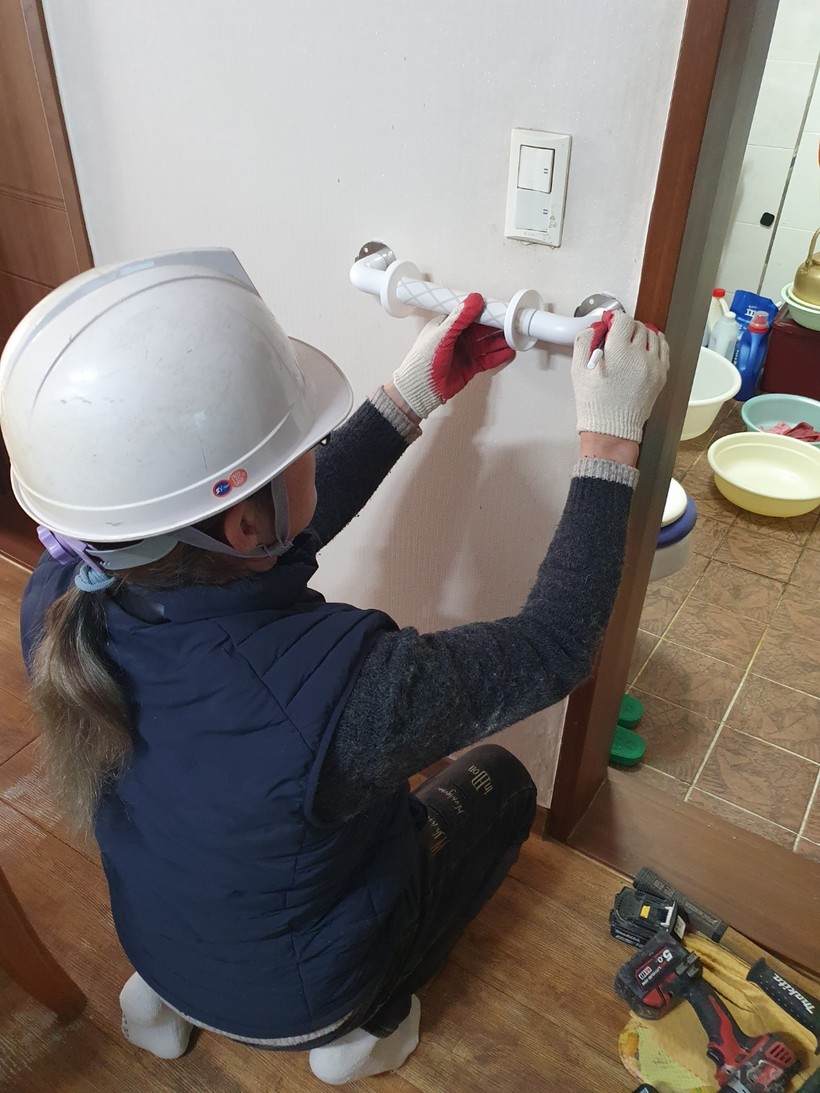 ▲ 동서발전 울산 노인·장애인 낙상사고 예방 안전손잡이 설치(사진=동서발전) |